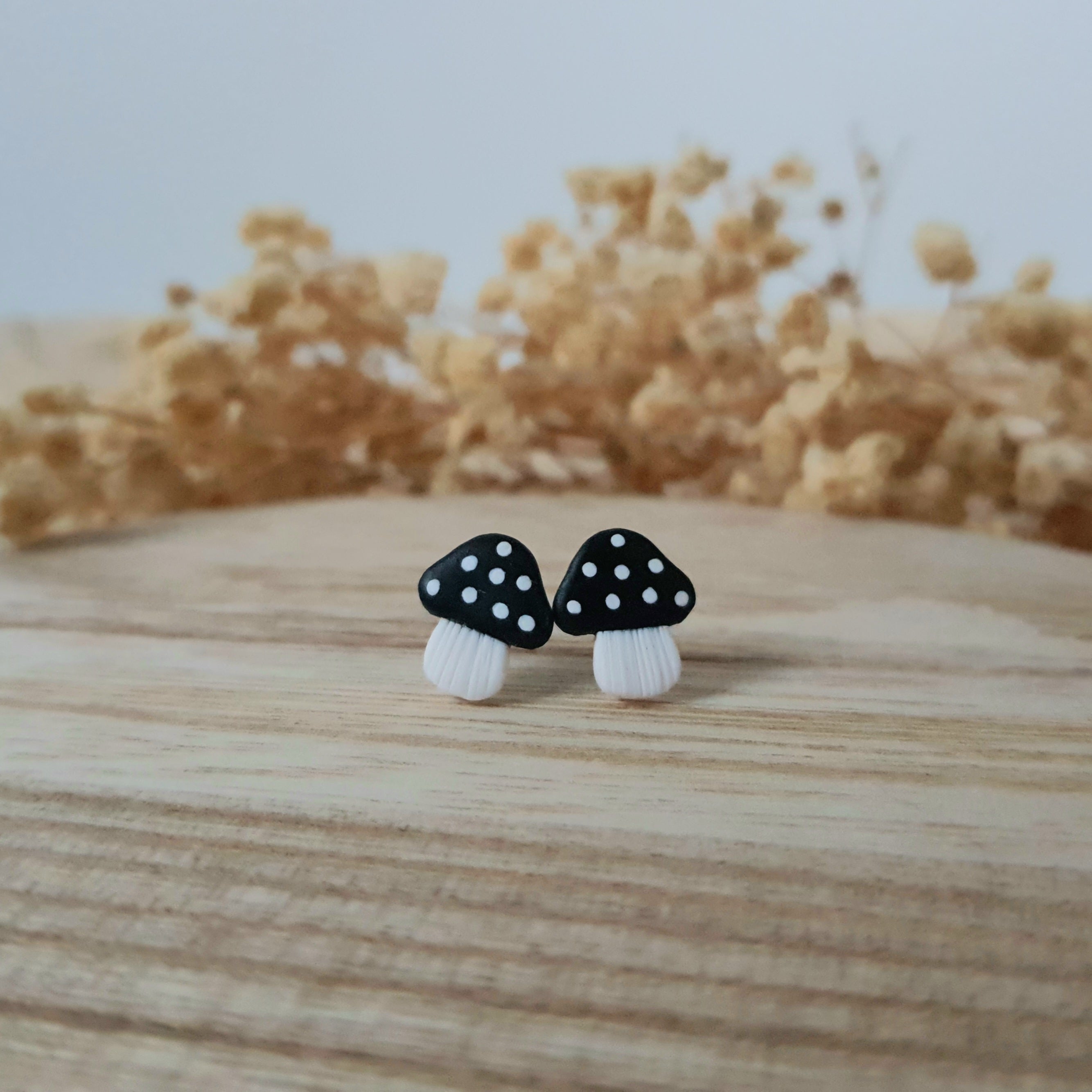 Handmade stud earrings. Size – total length: 1.2 cm or 0.47 inch. Surface-texture: matte, semi-glossy. Jewelry material: polymer clay, resin, stainless steel.