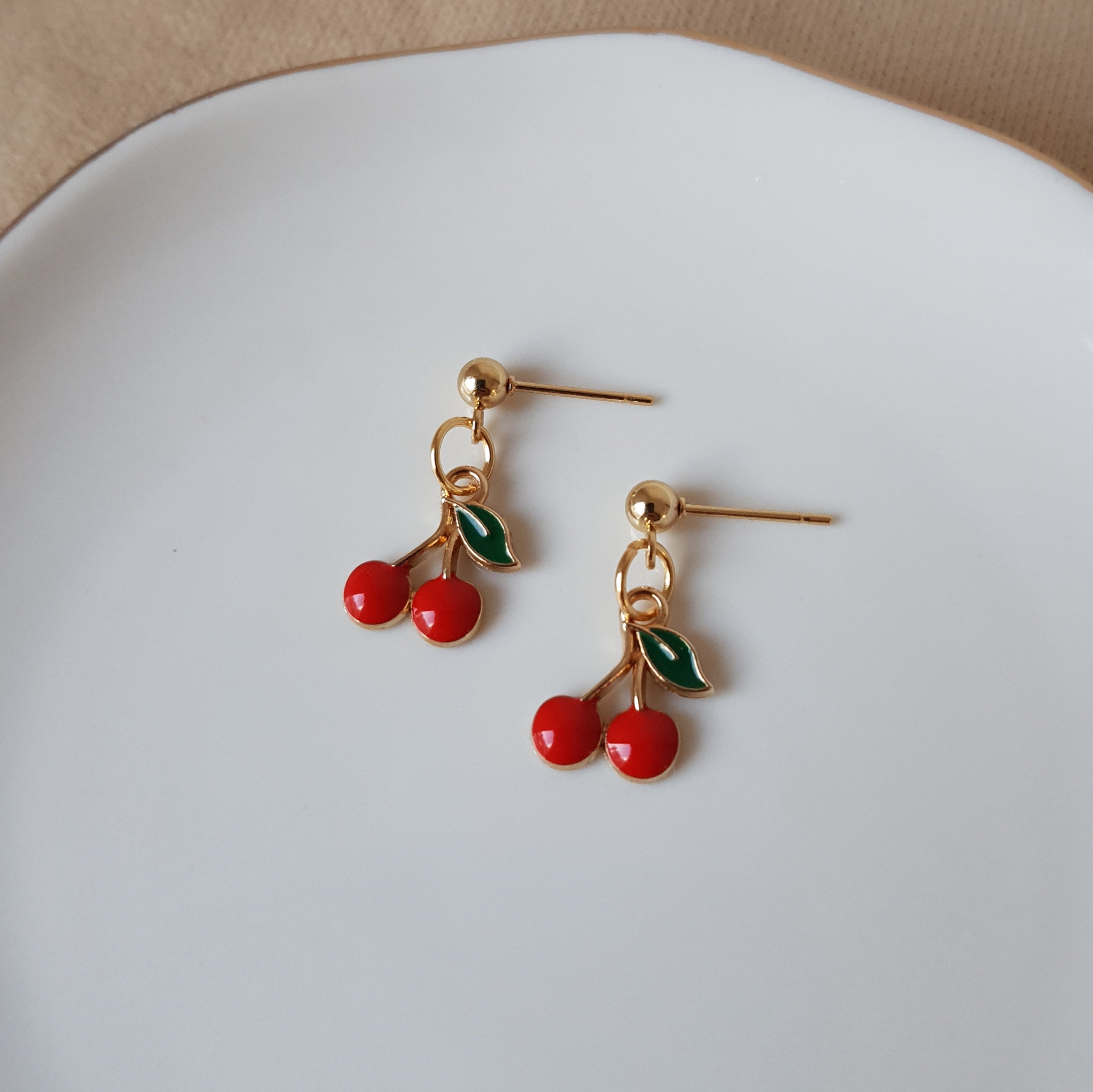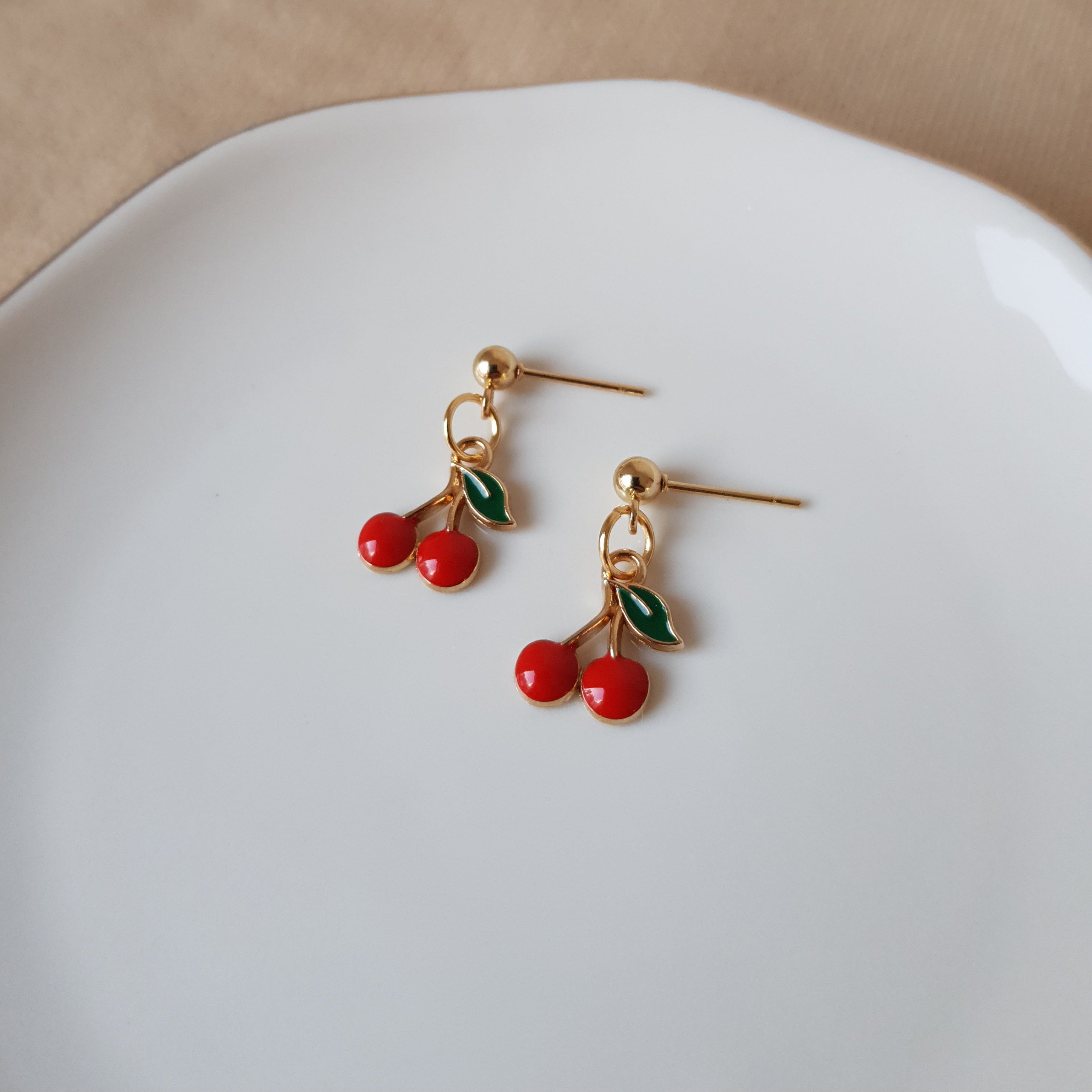 Cute cherry dangle earrings. Total length of earrings: 2.2 cm or 0.86 inch Jewelry material: enamel, stainles steel.