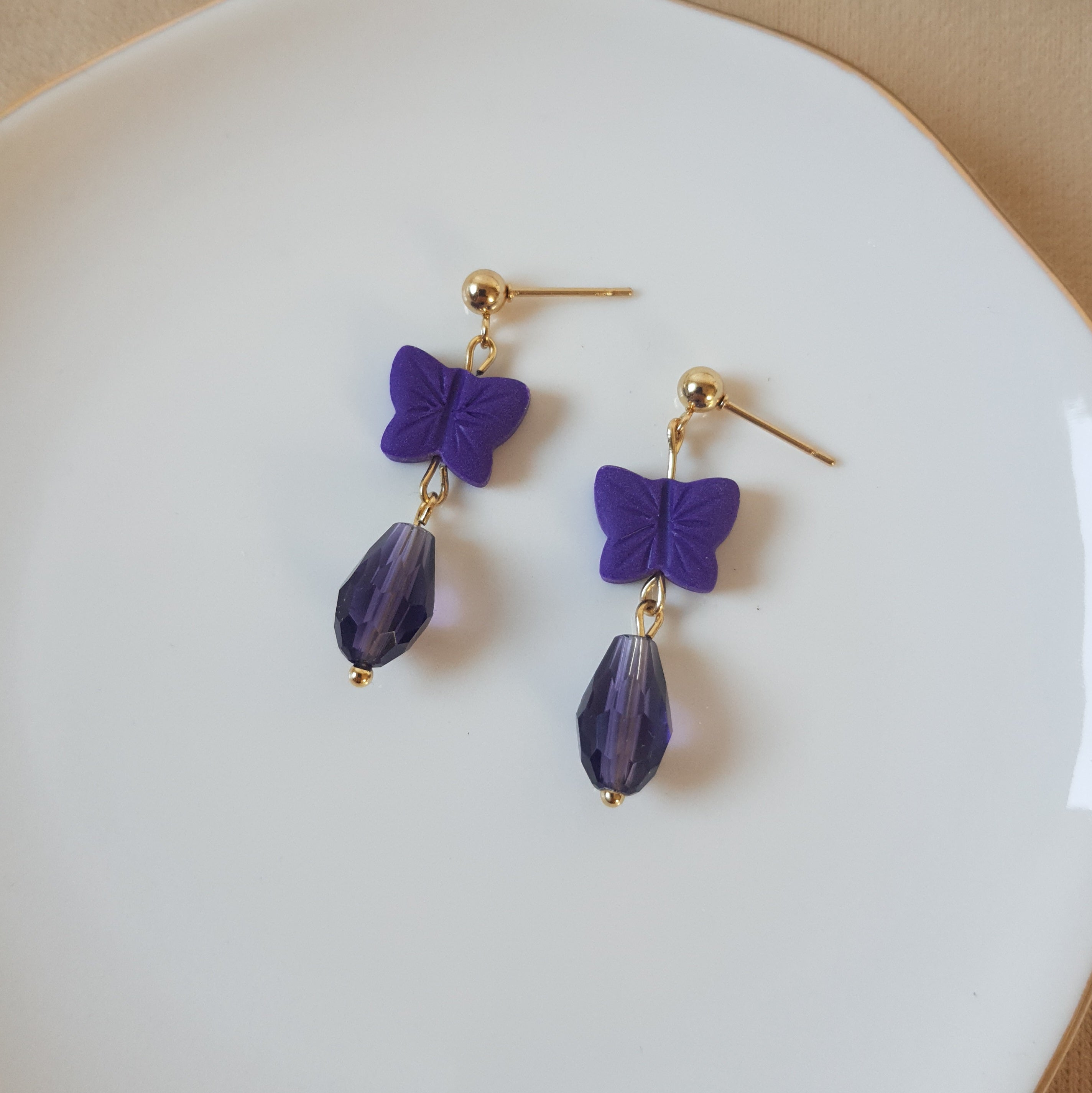 Handmade dangle earrings. Size – total length: 3.8 cm or 1.49 inch. Surface-texture: matte, glossy (backside). Jewelry material: polymer clay, glass, stainless steel, resin.