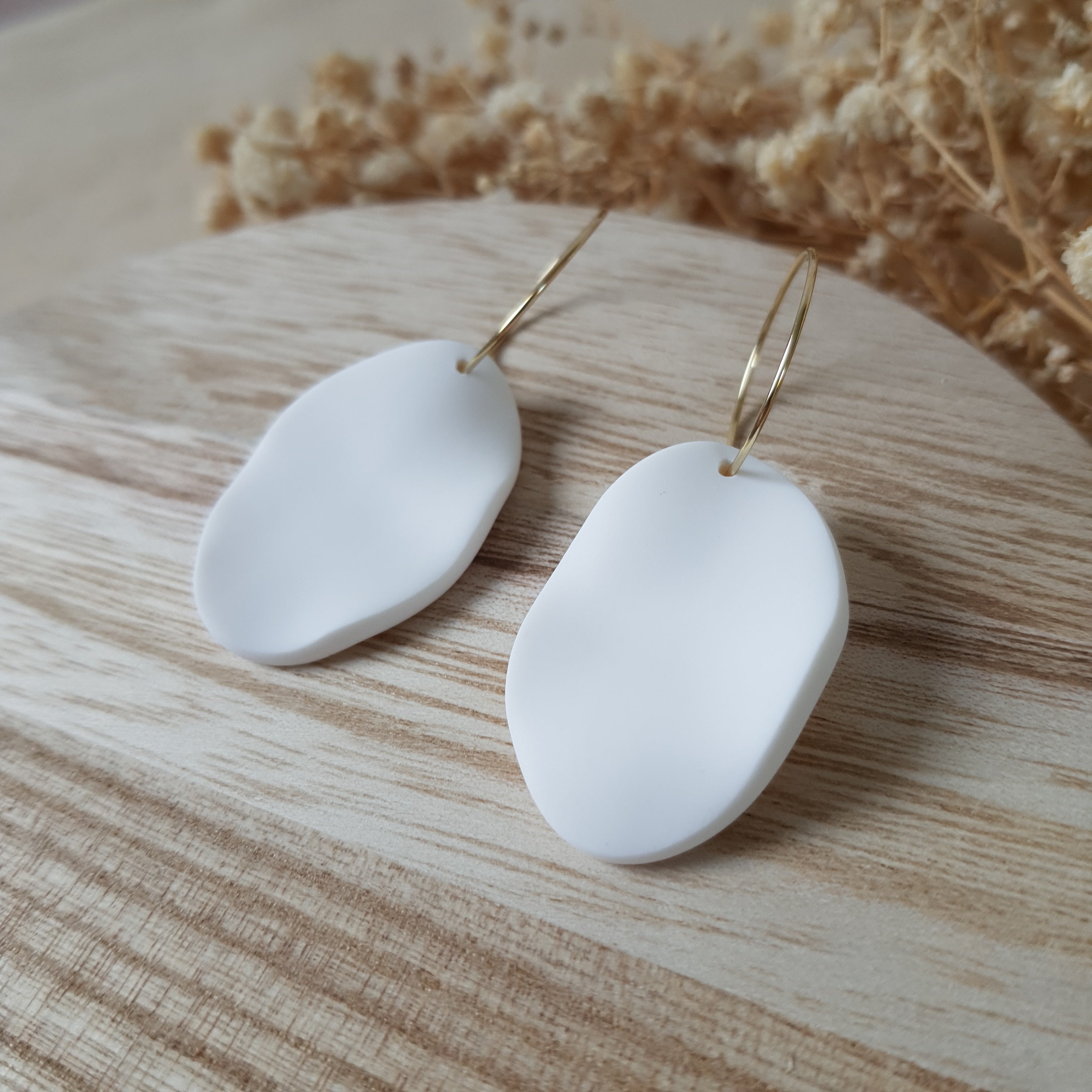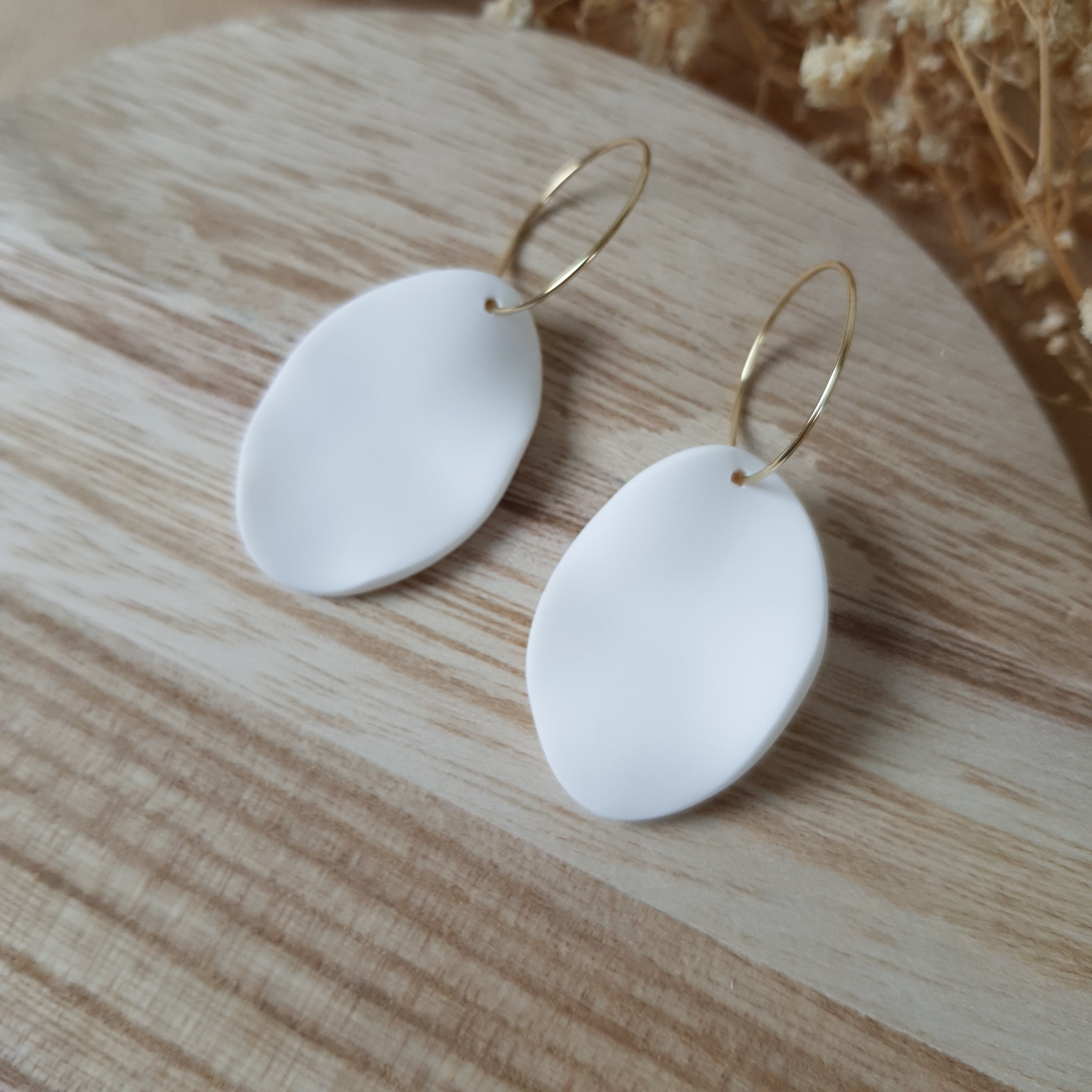 Handmade hoop earrings. Size – total length: 5.2 cm or 2.04 inch. Surface-texture: matte. Jewelry material: polymer clay, stainless steel.