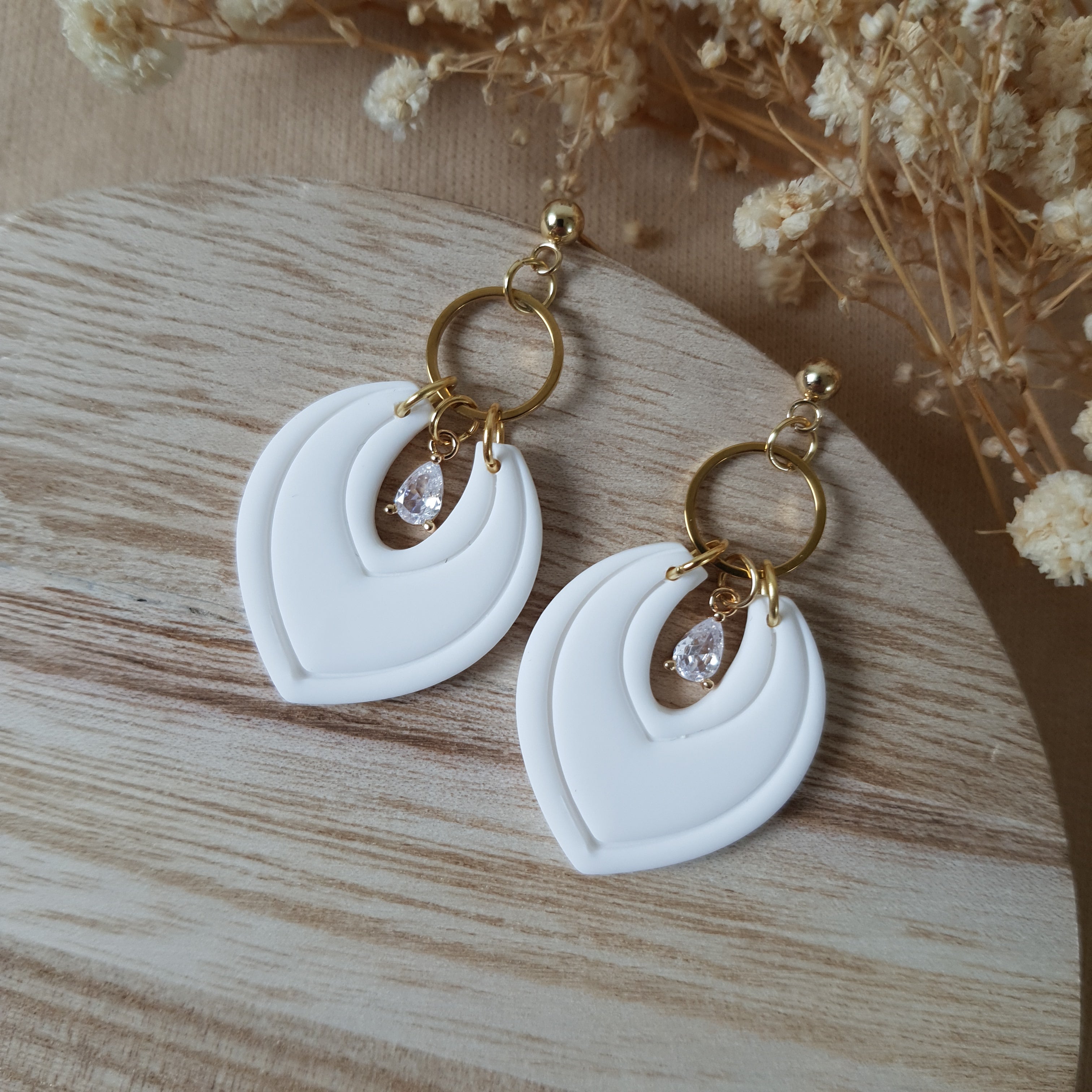 Handmade dangle earrings. Size – total length: 5 cm or 1.96 inch. Surface-texture: matte, glossy. Jewelry material: polymer clay, resin, stainless steel, zirconia.