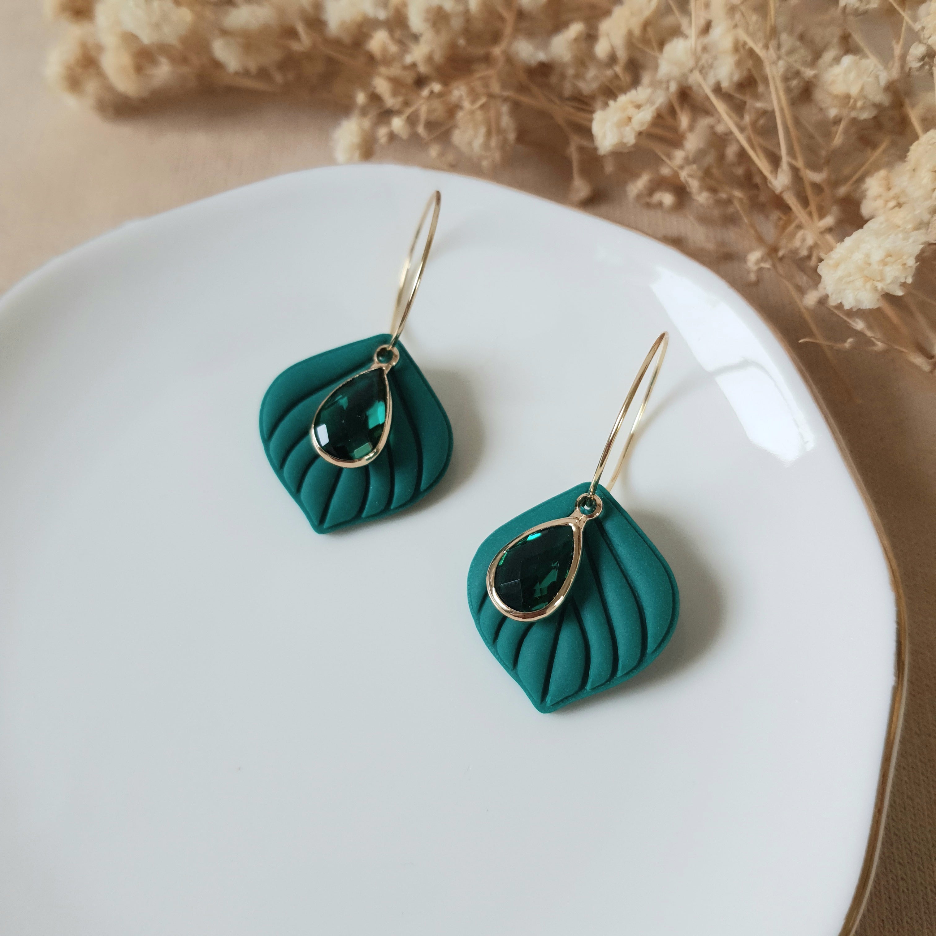 Handmade hoop earrings. Size – total length: 4.2 cm or 1.65 inch. Surface-texture: matte, glossy (backside). Jewelry material: polymer clay, resin, stainless steel, glass.