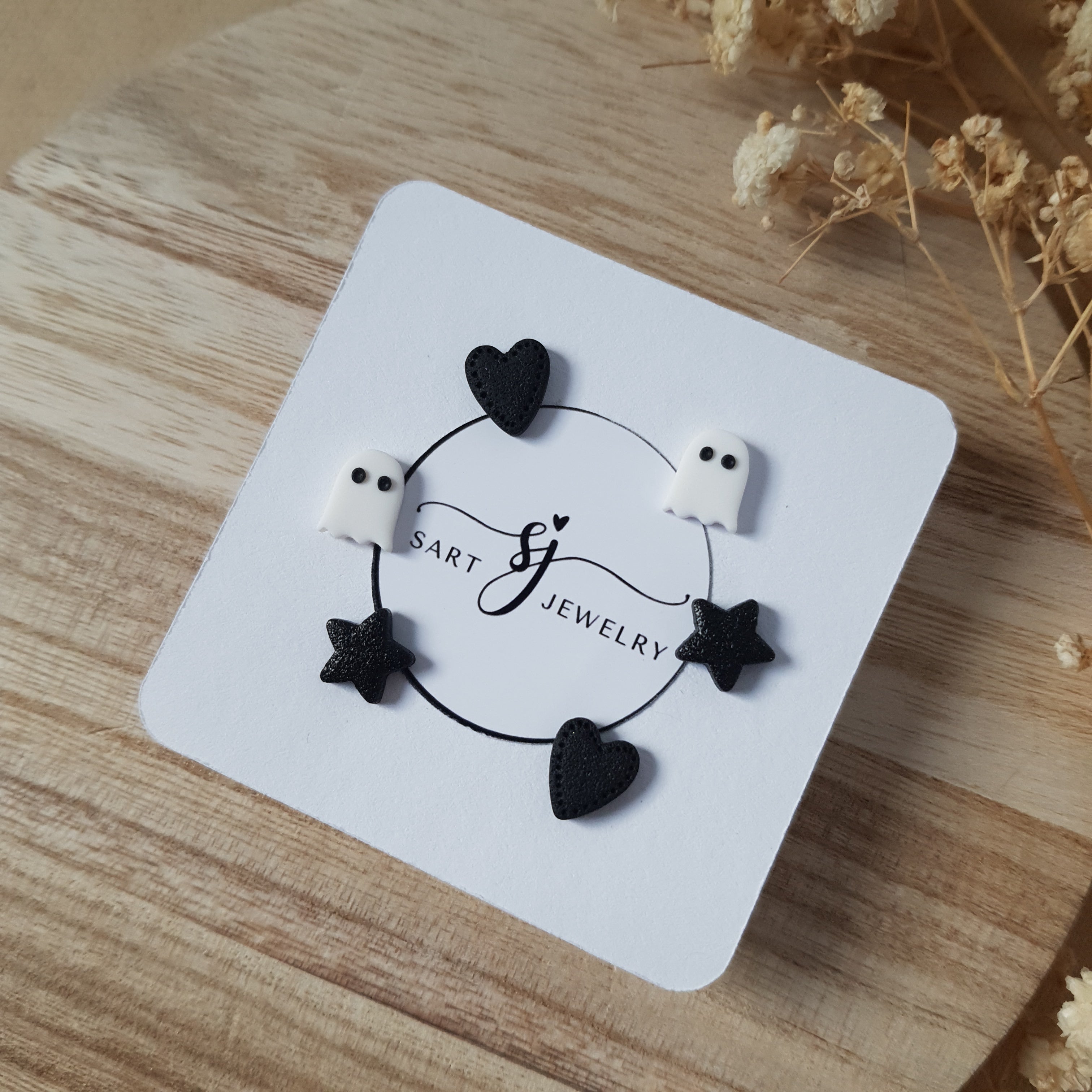 Handmade stud earrings. Size – total length: 0.9-1 cm or 0.34-0.39 inch. Surface-texture: matte. Jewelry material: polymer clay, resin, stainless steel.