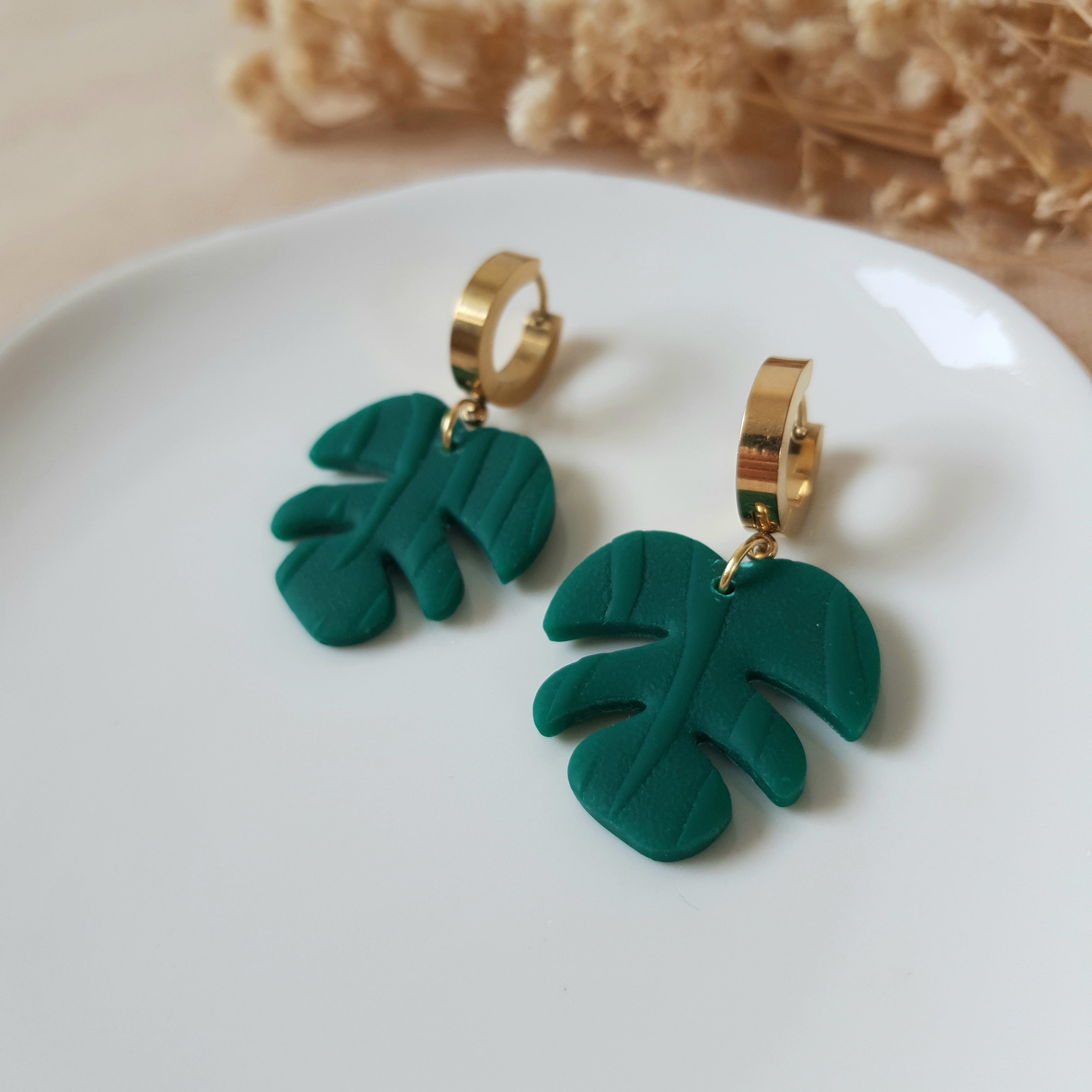 Handmade dangle earrings. Size – total length: 4 cm or 1.53 inch. Surface-texture: matte, glossy (backside). Jewelry material: polymer clay, resin, stainless steel.