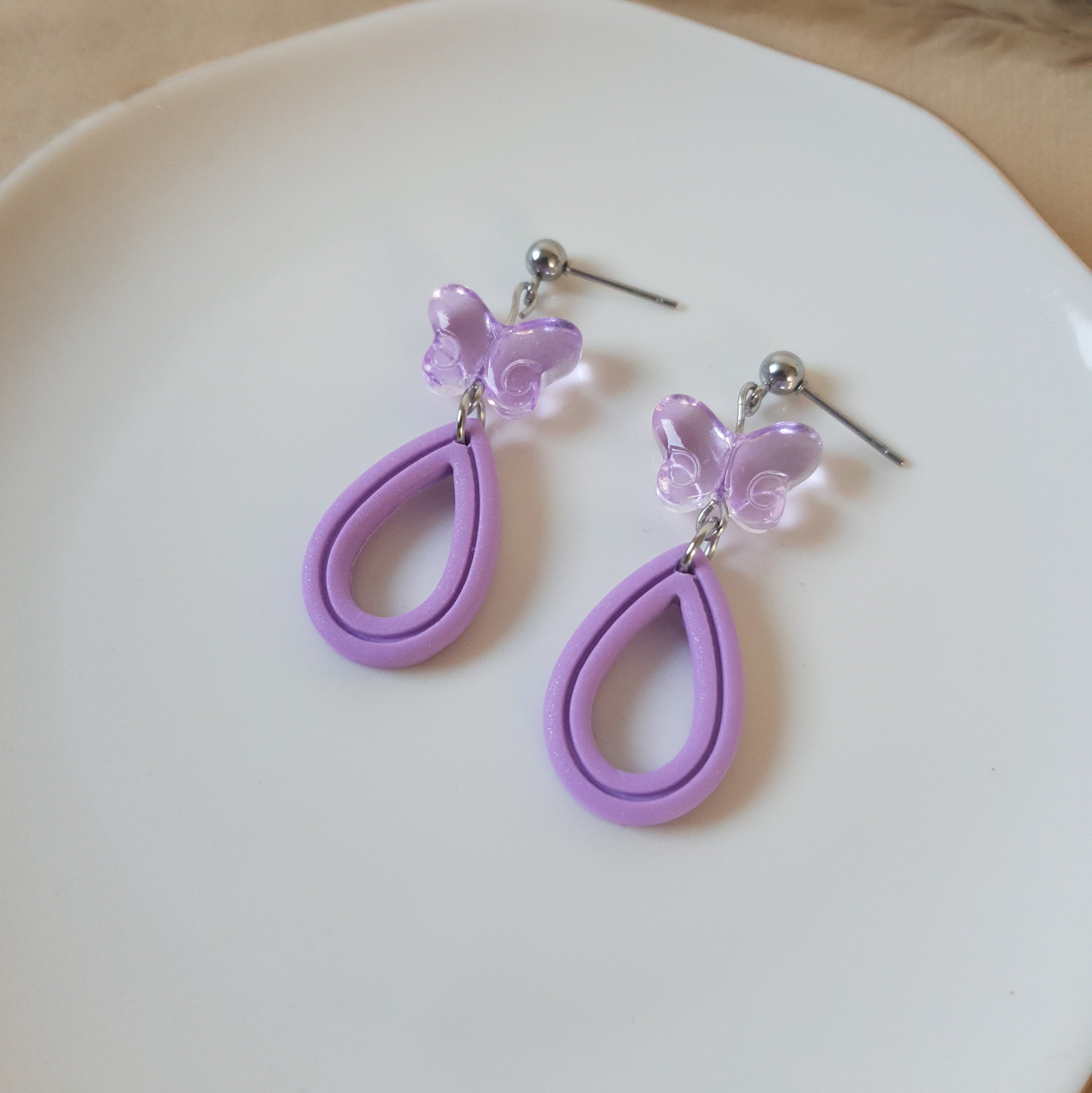 Handmade dangle earrings. Size – total length: 4.5 cm or 1.77 inch. Surface-texture: matte, glossy (backside). Jewelry material: polymer clay, acrylic, stainless steel.