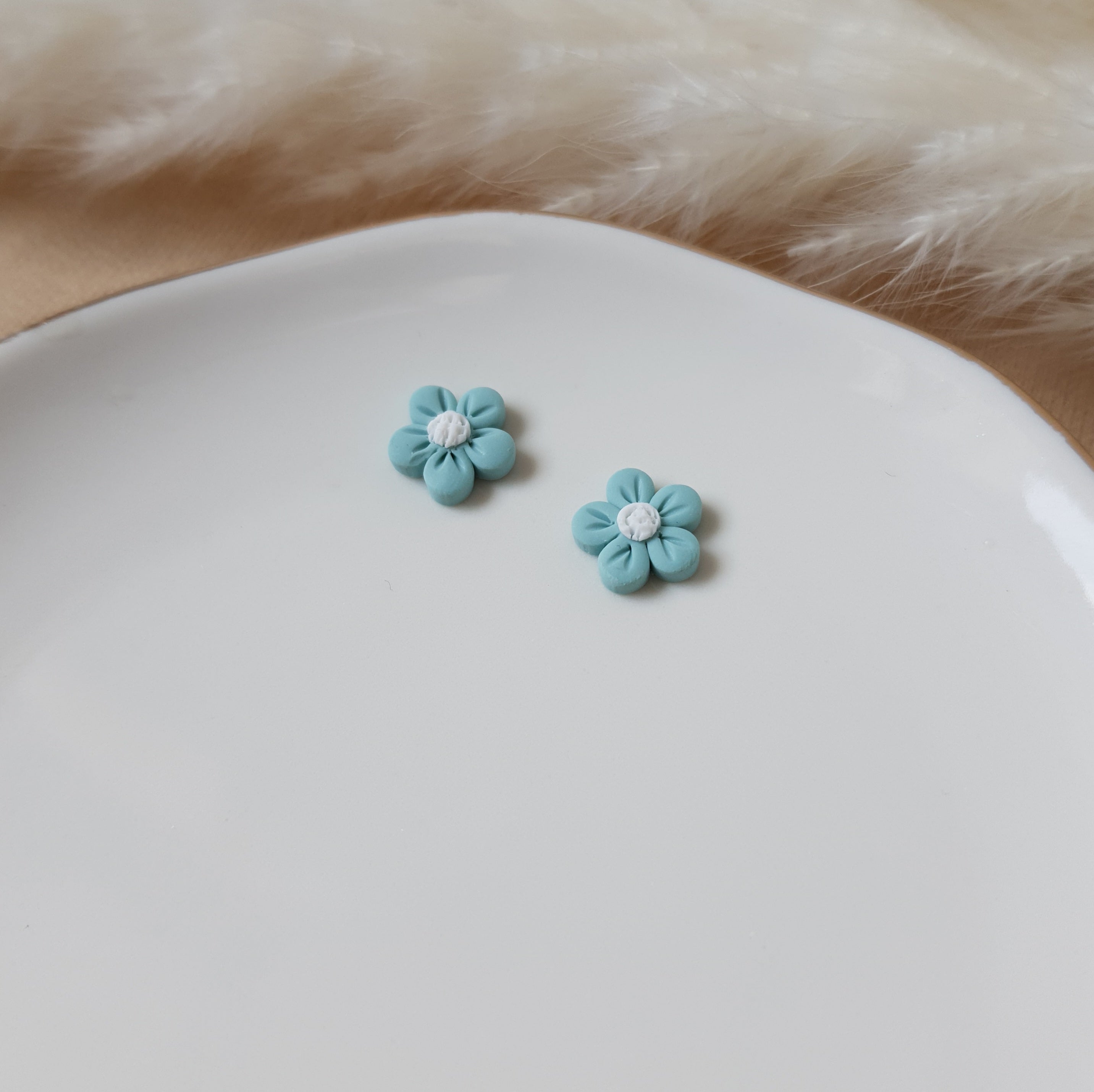 Handmade flower stud earrings. Size – daisy – width: 1 cm or 0.39 inch Surface-texture: matte. Jewelry material: polymer clay, resin, stainless steel.