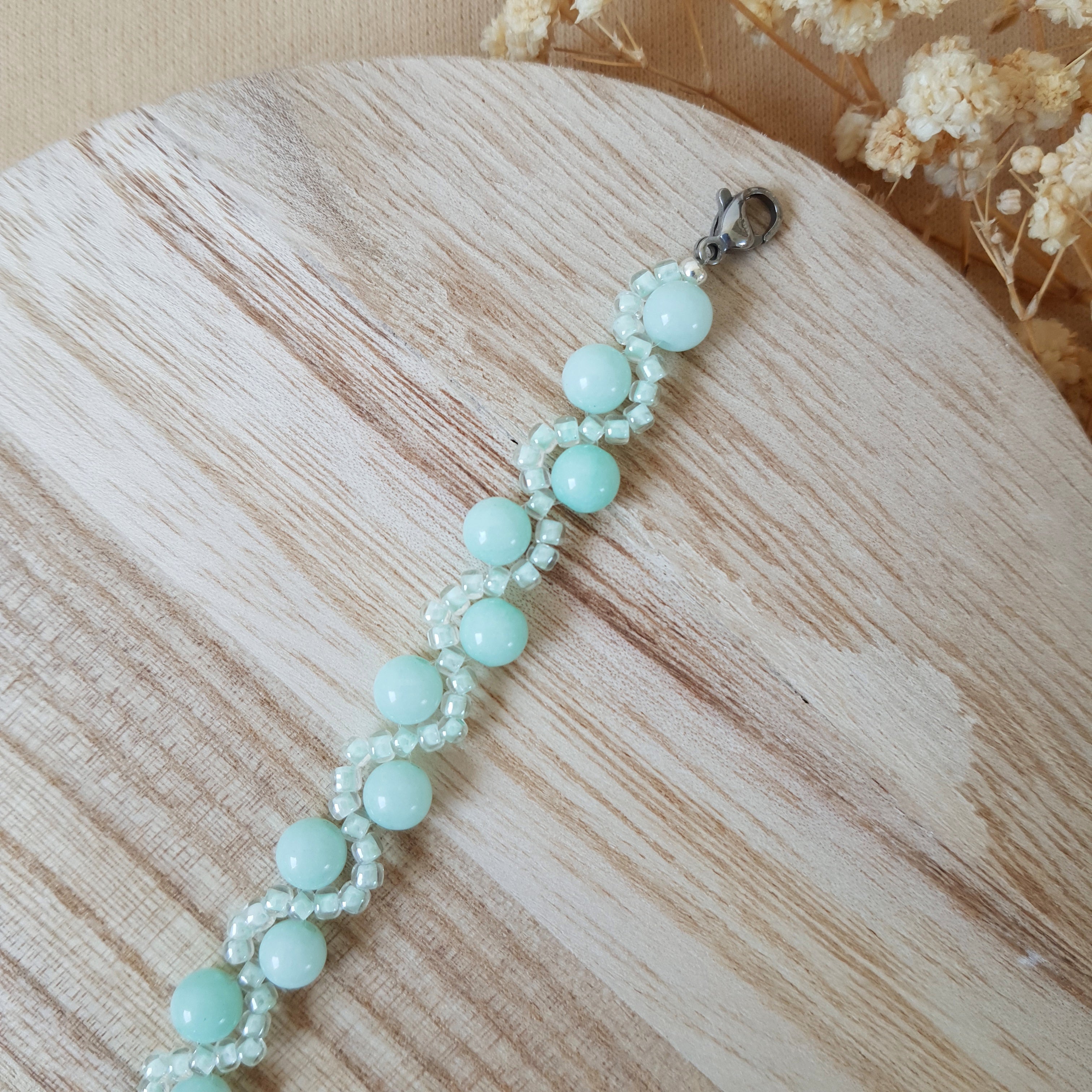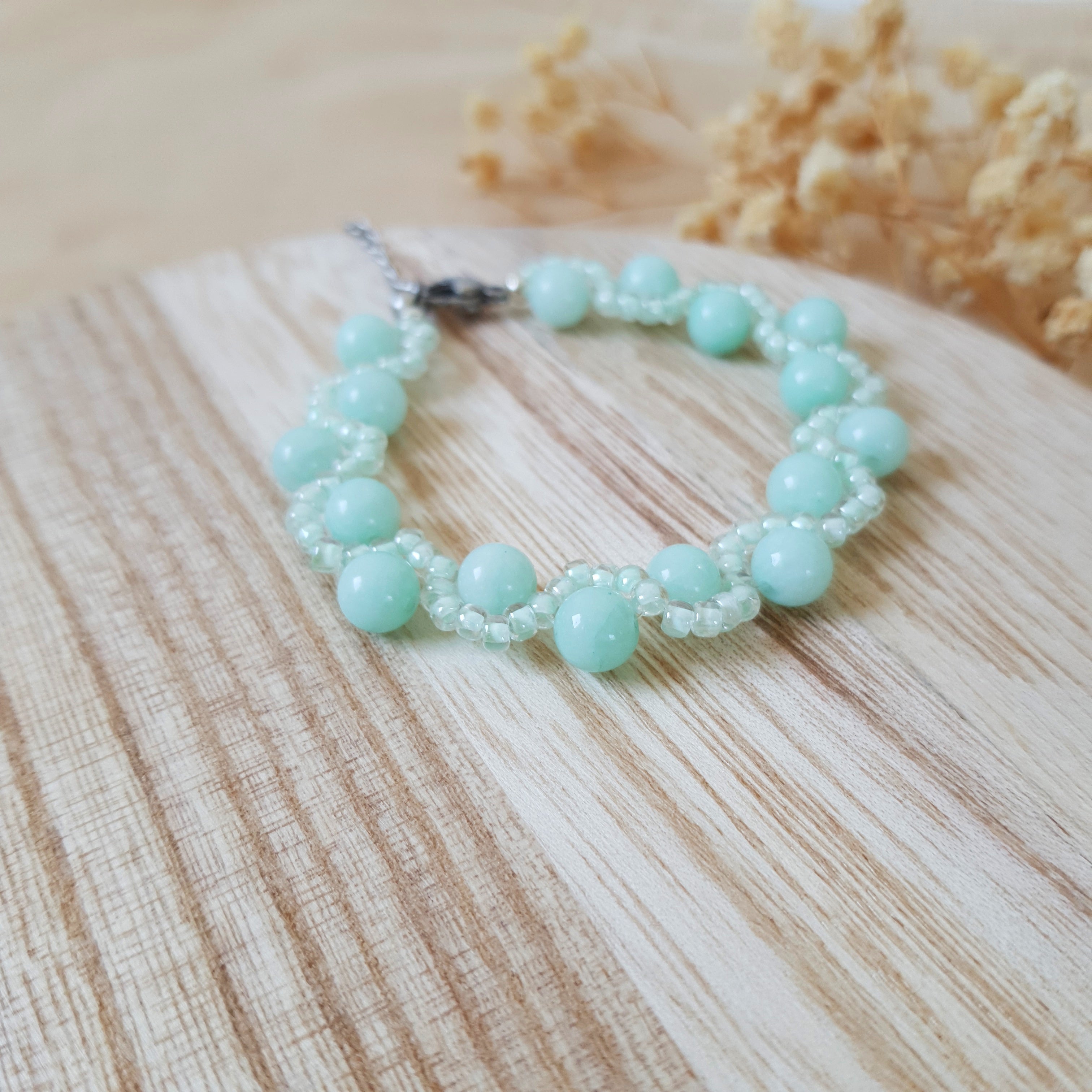 Handmade Moon bracelet. Size: adjustable – universal. Jewelry material: jade, glass, stainless steel.