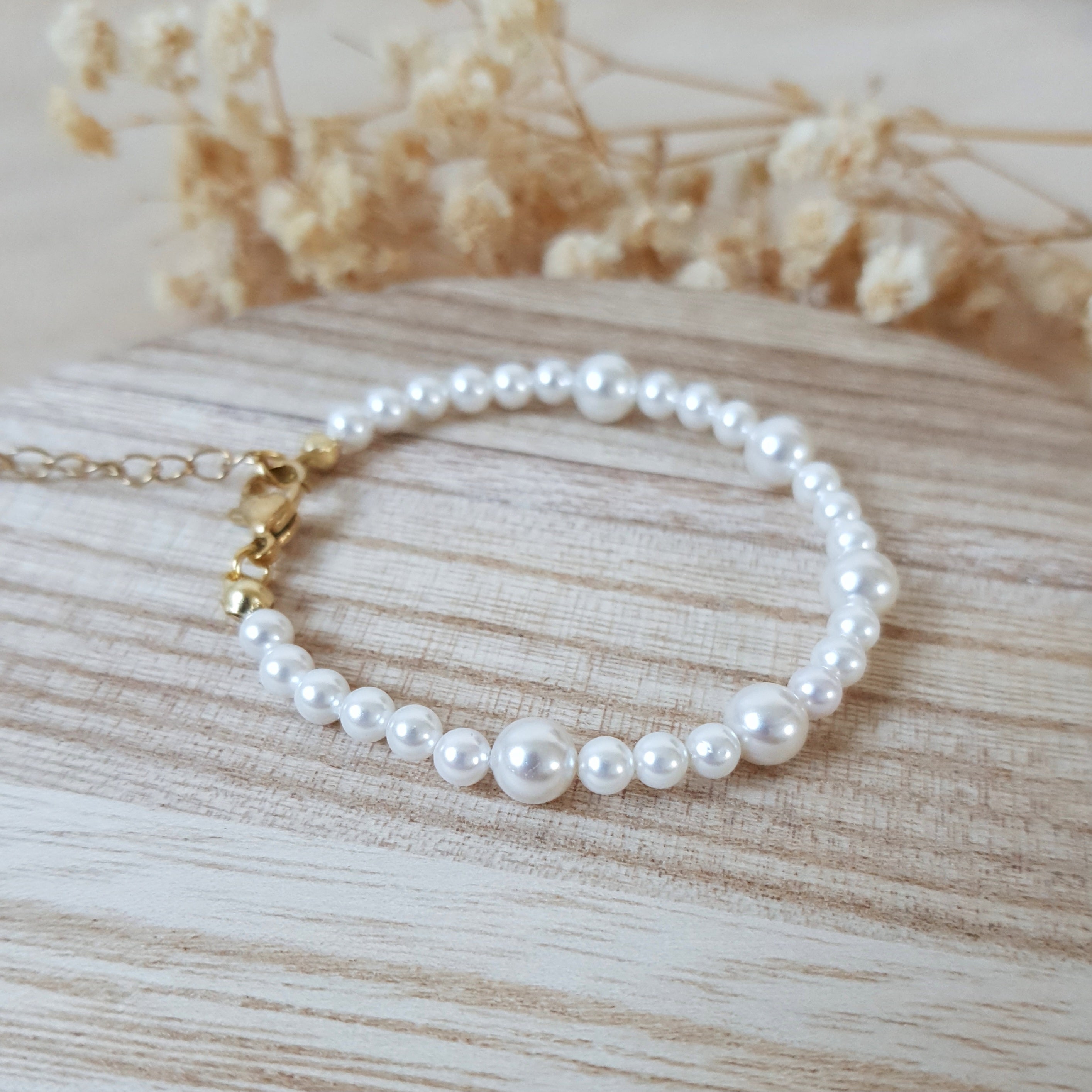 Handmade Pearl bracelet. Size: adjustable – universal. Jewelry material: shell pearl, gold plated stainless steel. Bead size: 4 mm and 6 mm.
