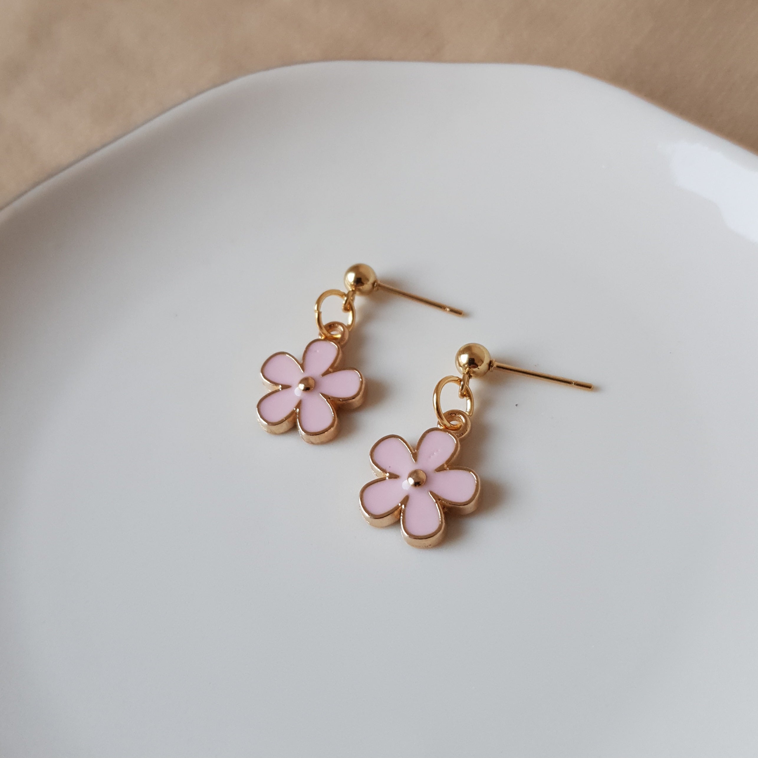 Cute flower dangle earrings. Total length of earrings: 2.5 cm or 0.98 inch Jewelry material: enamel, stainless steel.