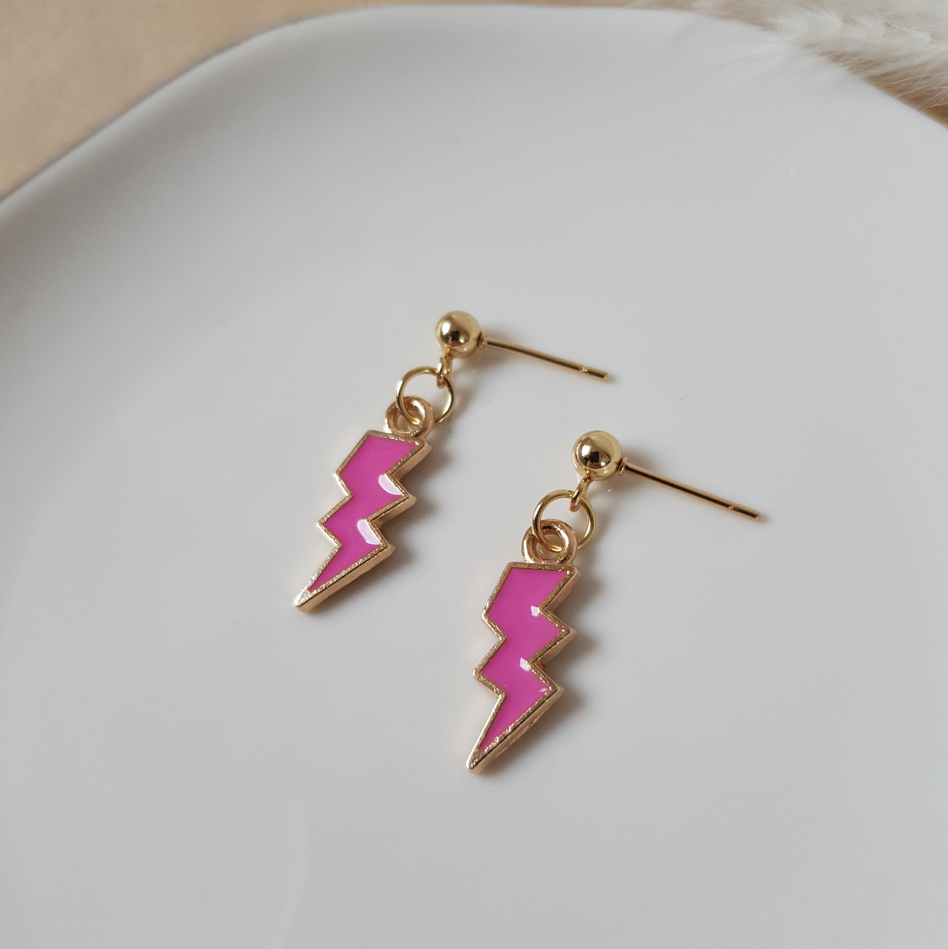 Pink lightning bolt dangle earrings. Total length of earrings: 2.9 cm or 1.14 inch Jewelry material: enamel, stainless steel.