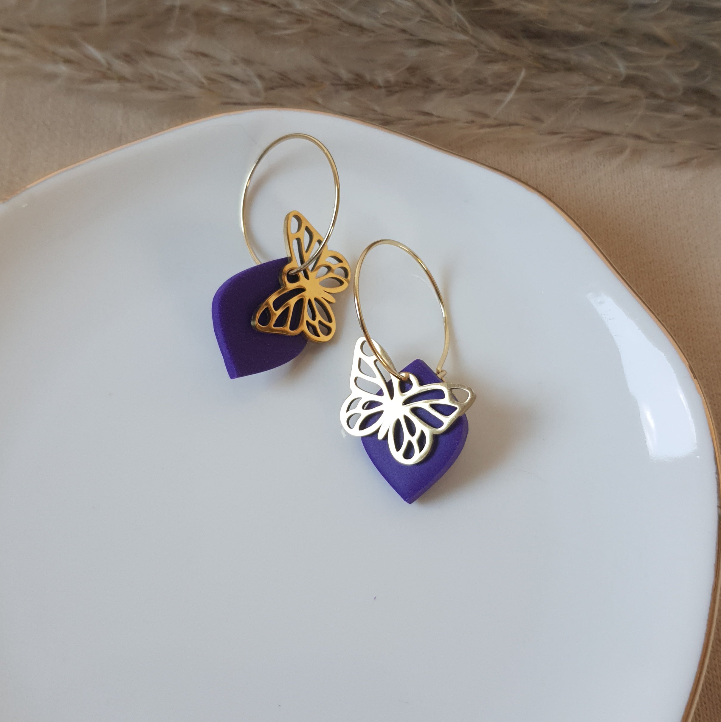 Handmade hoop earrings. Size – total length: 3.7 cm or 1.45 inch. Surface-texture: matte, glossy. Jewelry material: polymer clay, stainless steel, resin.