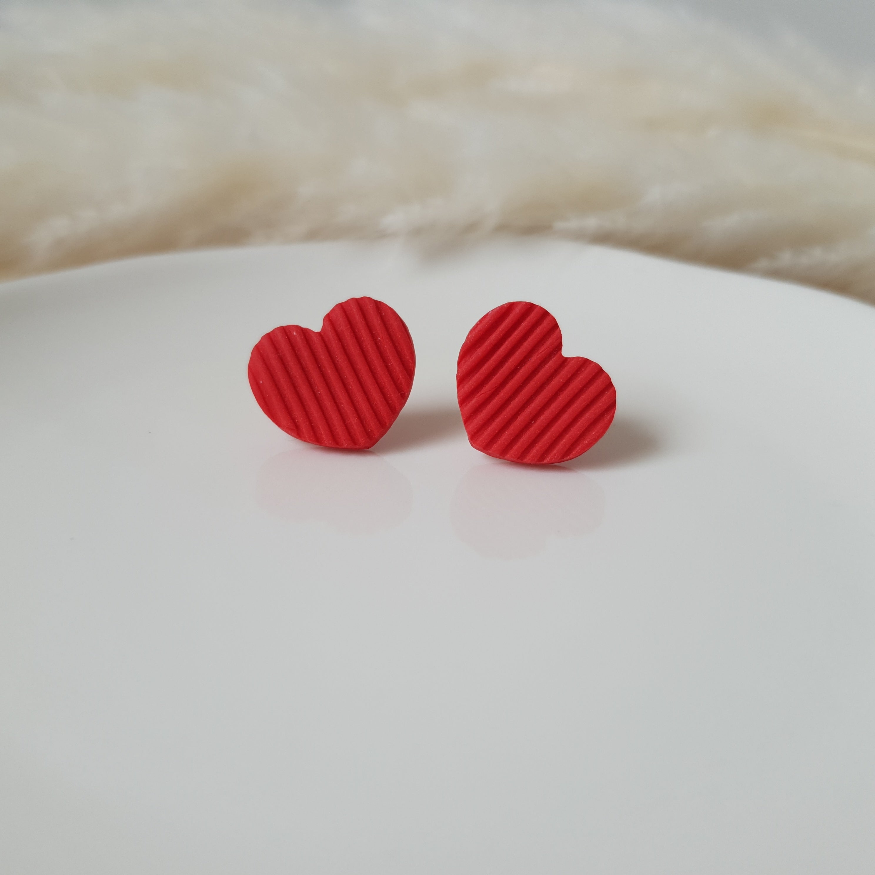 Handmade heart stud earrings. Size – total length: 1.3 cm or 0.51 inch. Surface-texture: matte. Jewelry material: polymer clay, resin, stainless steel.