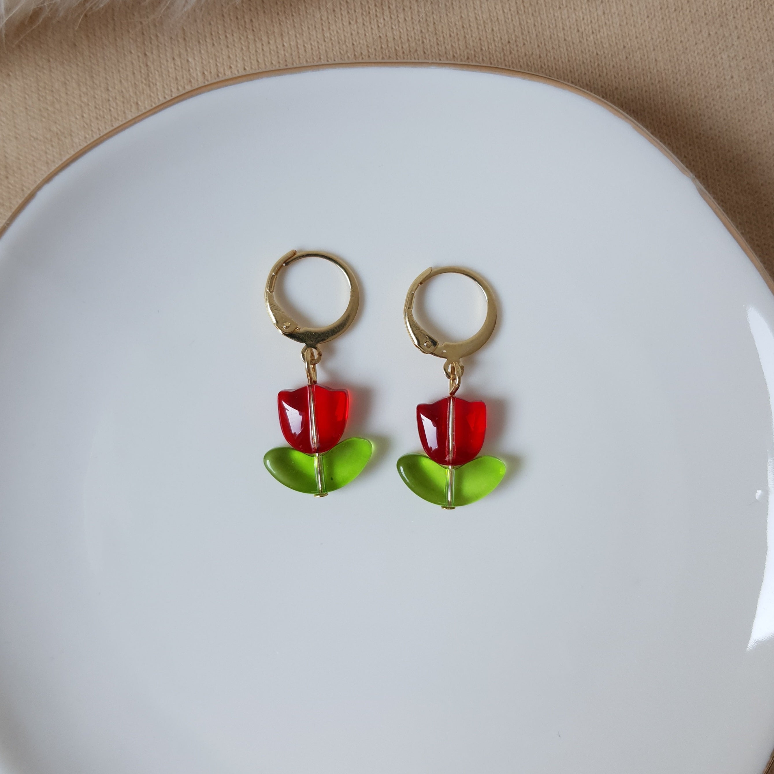 Cute tulip dangle earrings. Total length of earrings: 3.1 cm or 1.22 inch Length of tulip: 1.5 cm 0.59 inch Jewelry material: acrylic, stainless steel.