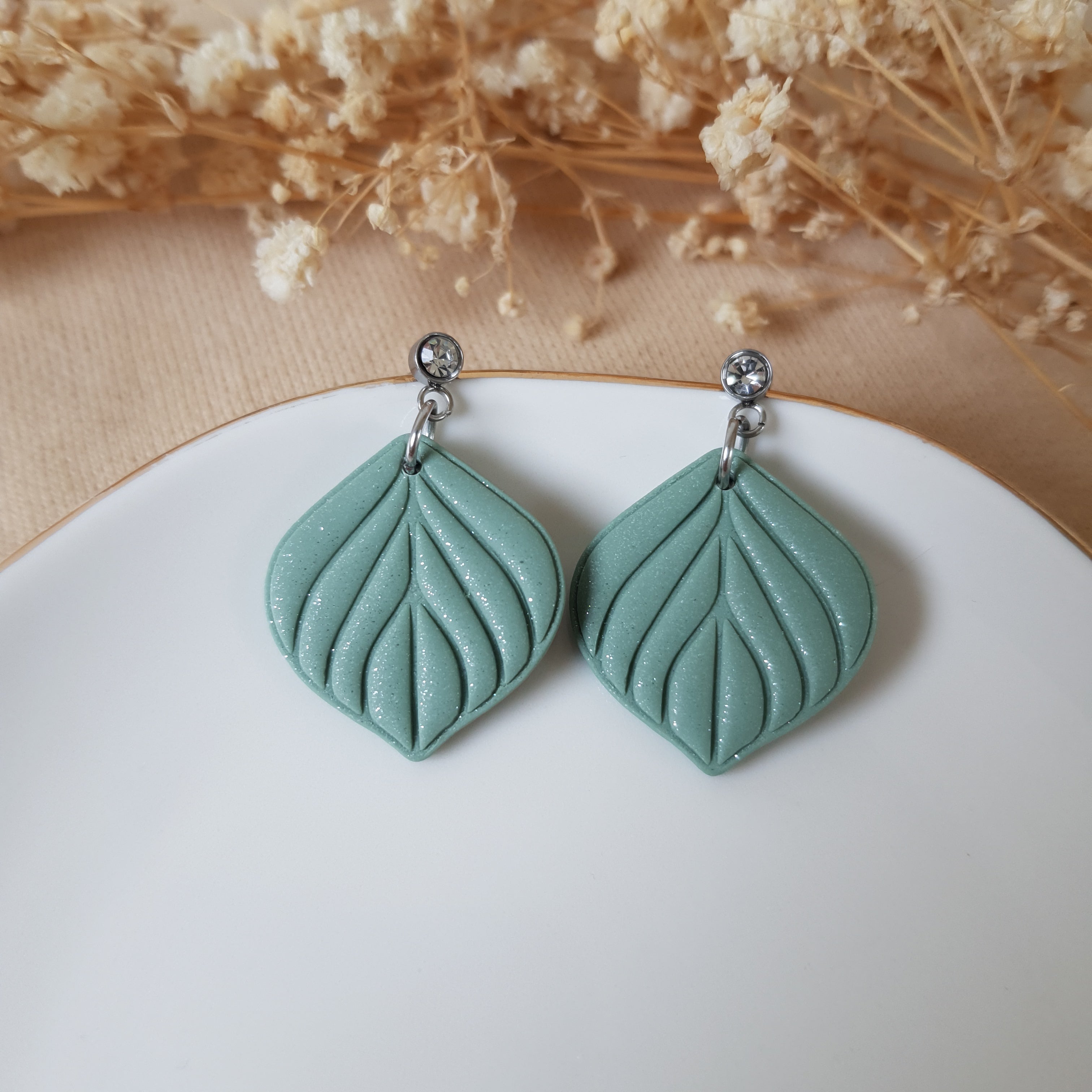 Handmade dangle earrings. Size – total length: 3.3 cm or 1.29 inch. Surface-texture: pearl shine, glossy (backside). Jewelry material: polymer clay, resin, stainless steel.