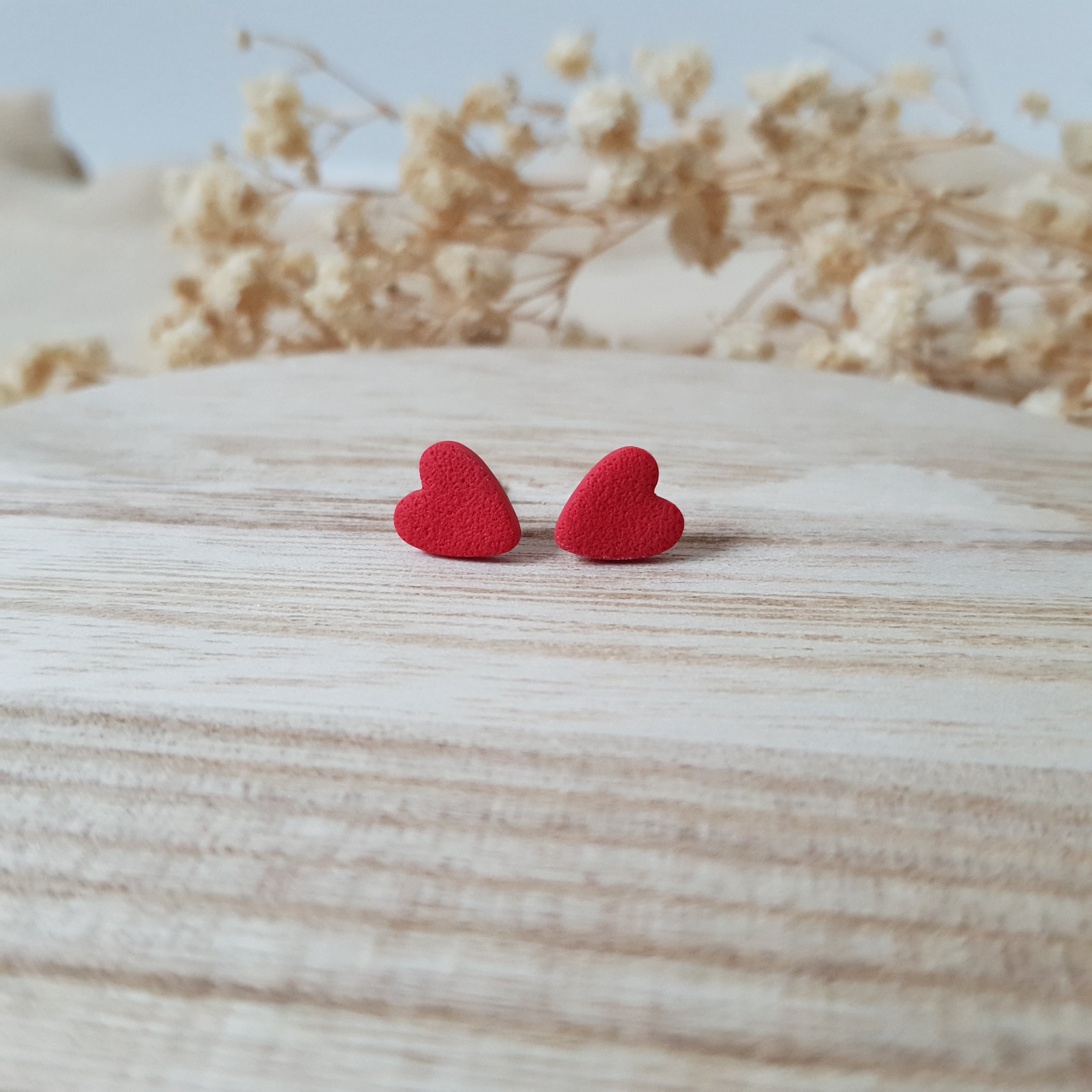 Handmade stud earrings. Size – total length: 1 cm or 0.39 inch. Surface-texture: matte. Jewelry material: polymer clay, resin, stainless steel.