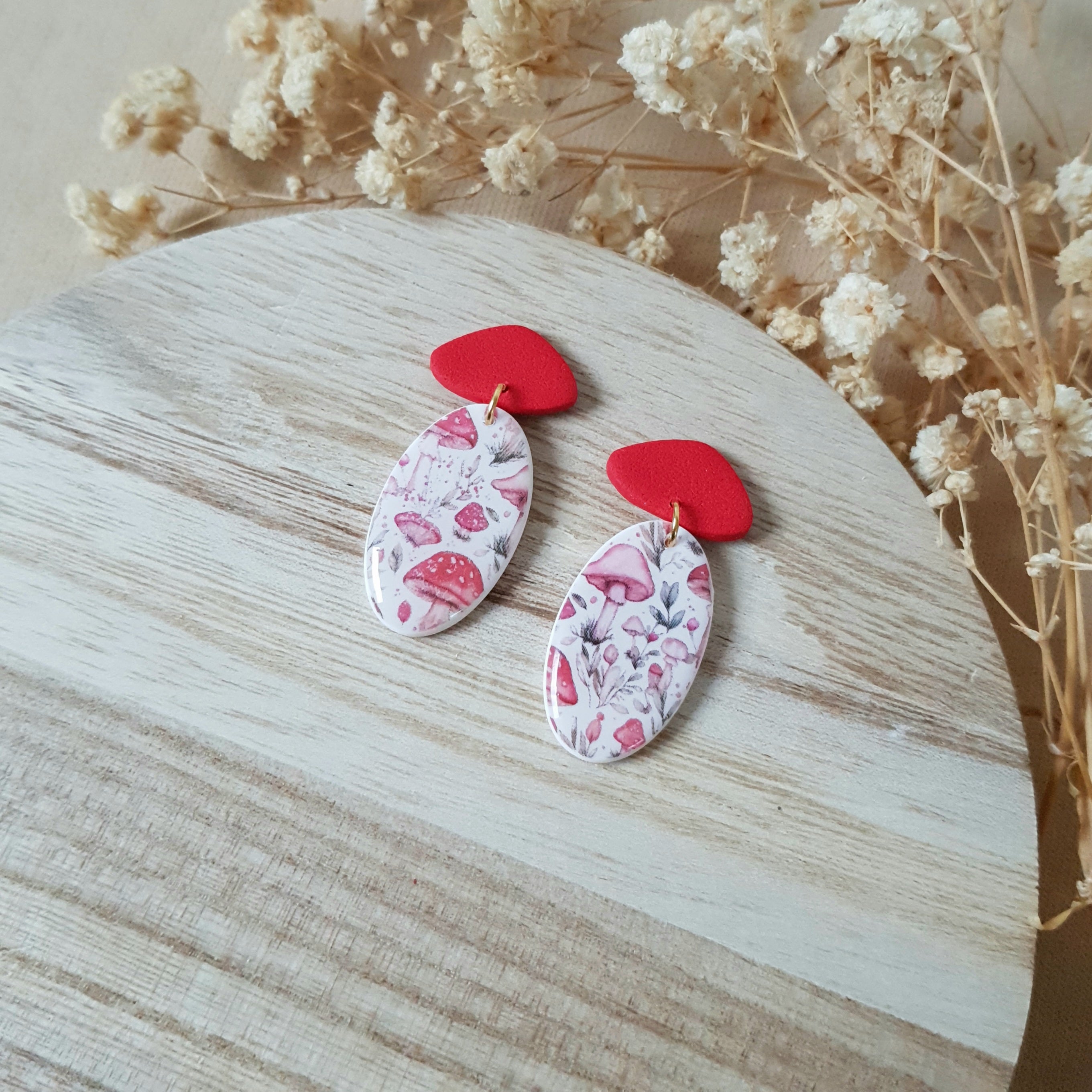Handmade dangle earrings. Size – total length: 4.1 cm or 1.61 inch. Surface-texture: glossy, matte. Jewelry material: polymer clay, resin, gold plated stainless steel.