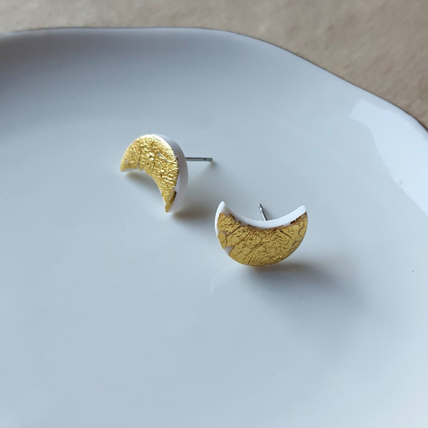 Handmade flower stud earrings. Size – length: 1.4 cm or 0.55 inch Surface-texture: semi-glossy. Jewelry material: polymer clay, resin, stainless steel.