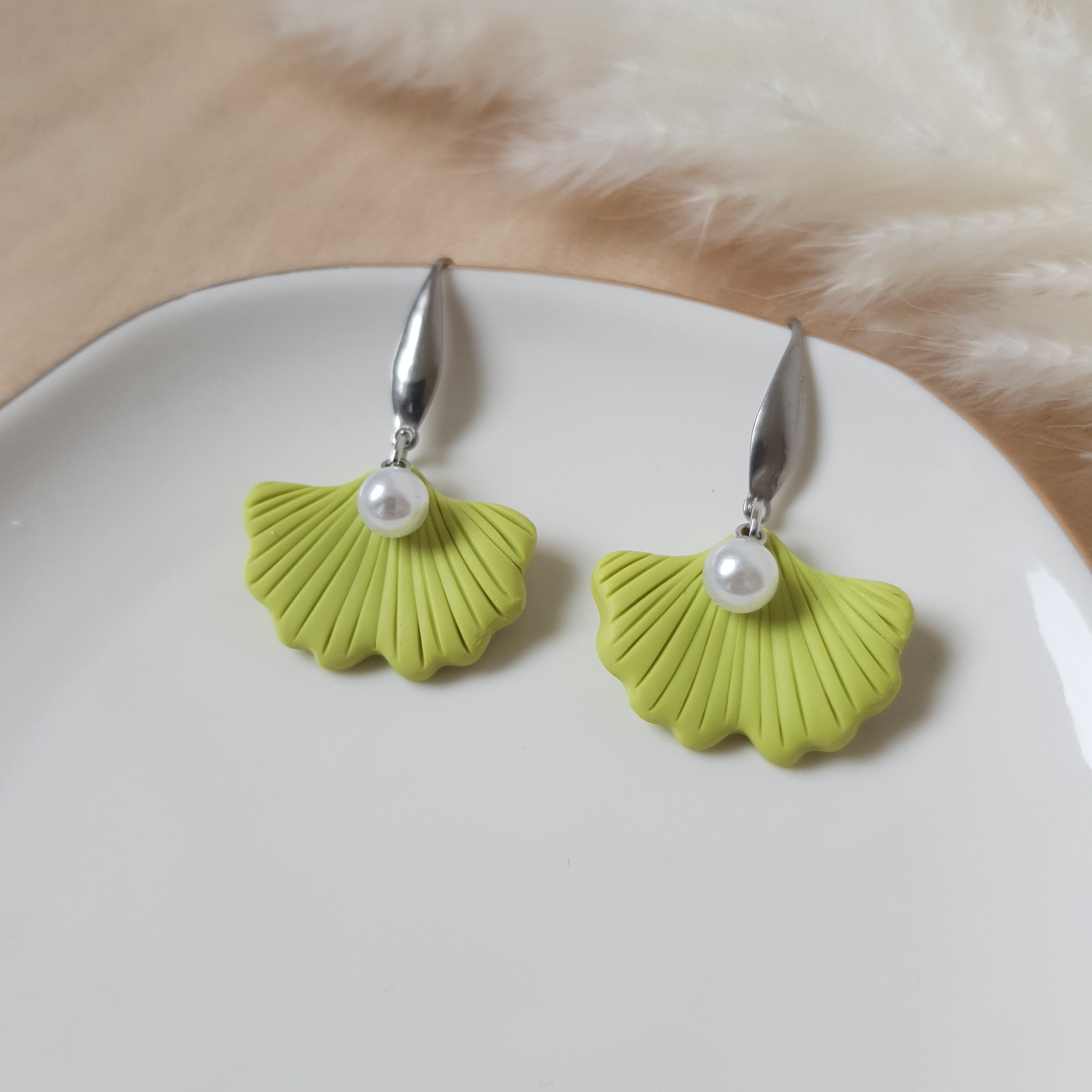 Lime green ginko earrings