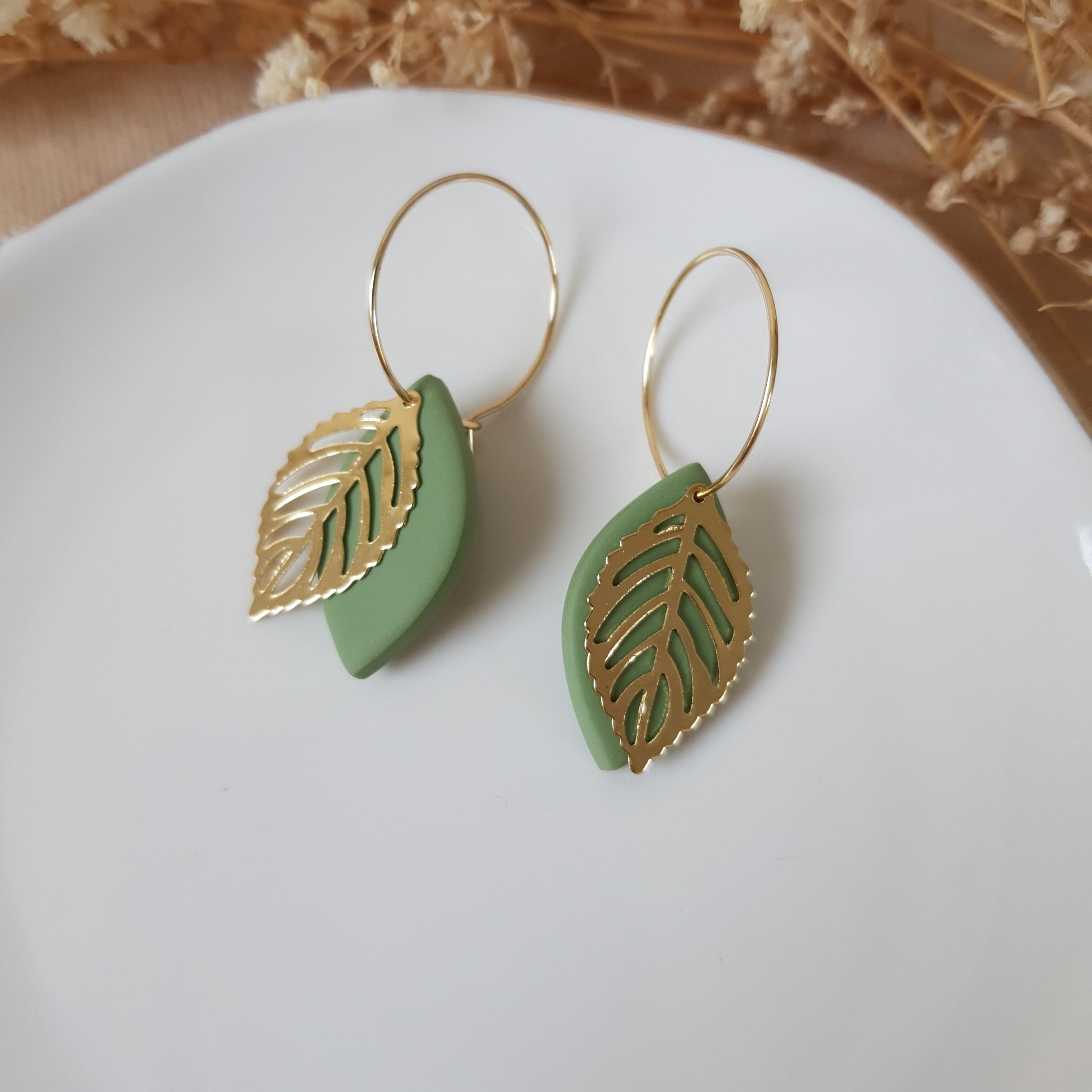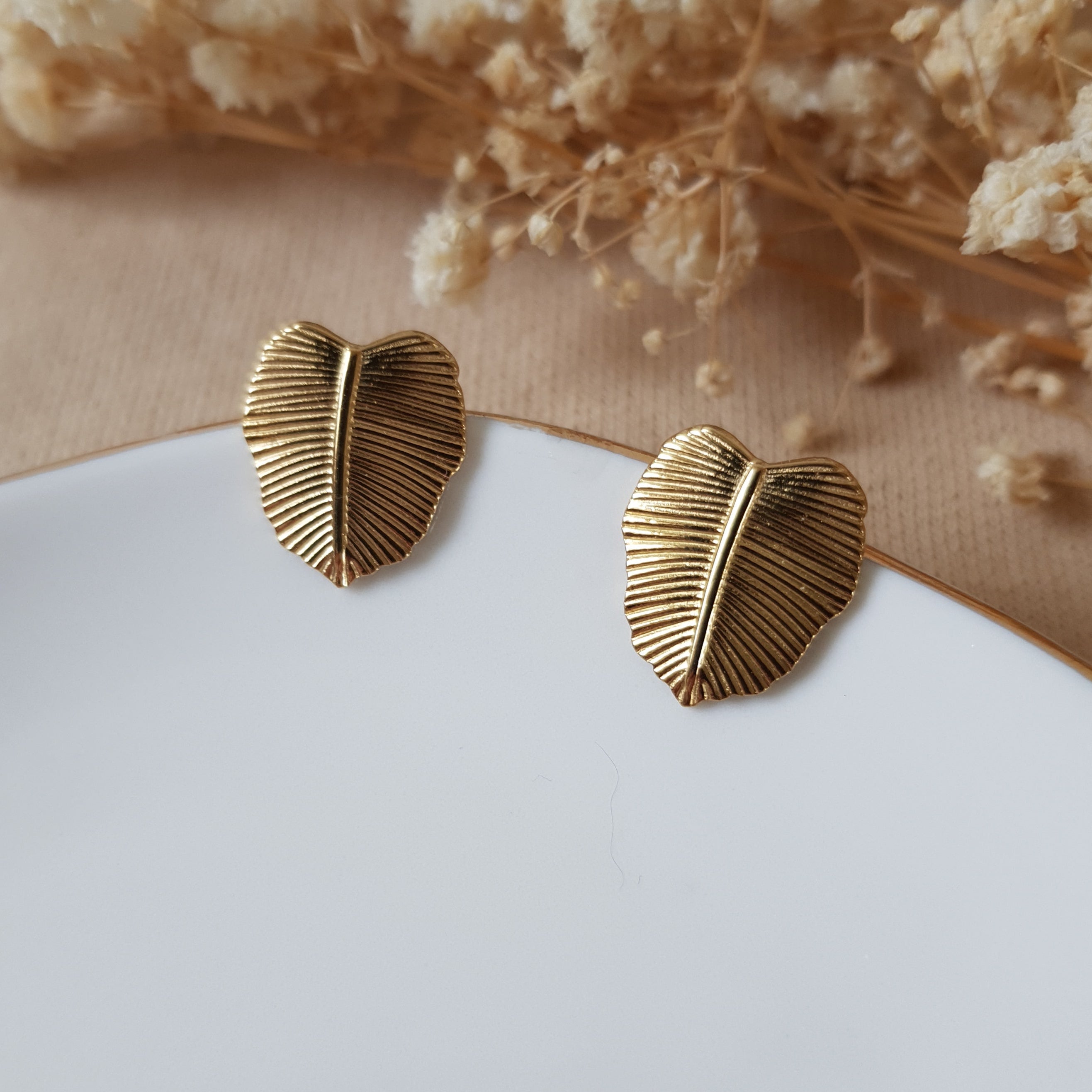 Gold on white leaf earrings